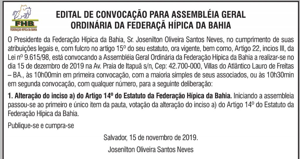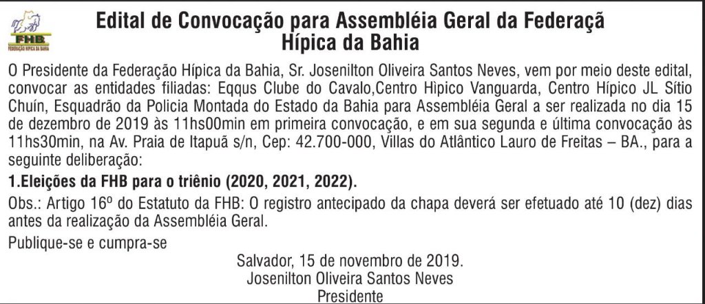 Campeonato Baiano e III Etapa do Ranking da FHB 2026
