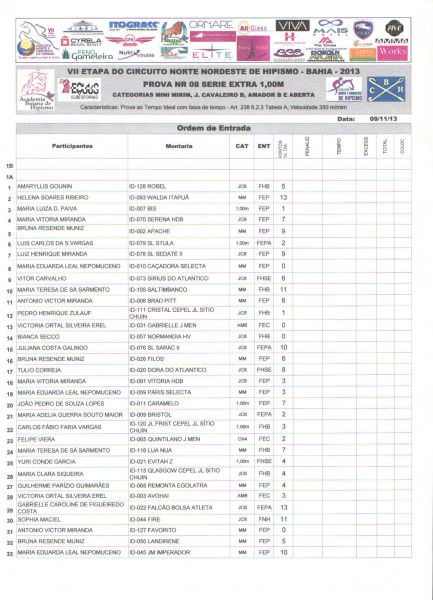 Prova n.º 08 - 1,00m / >>>Resultado<<<